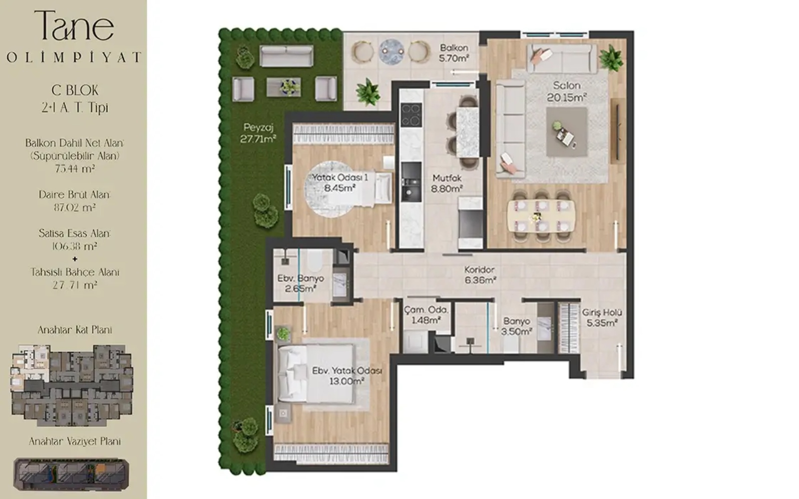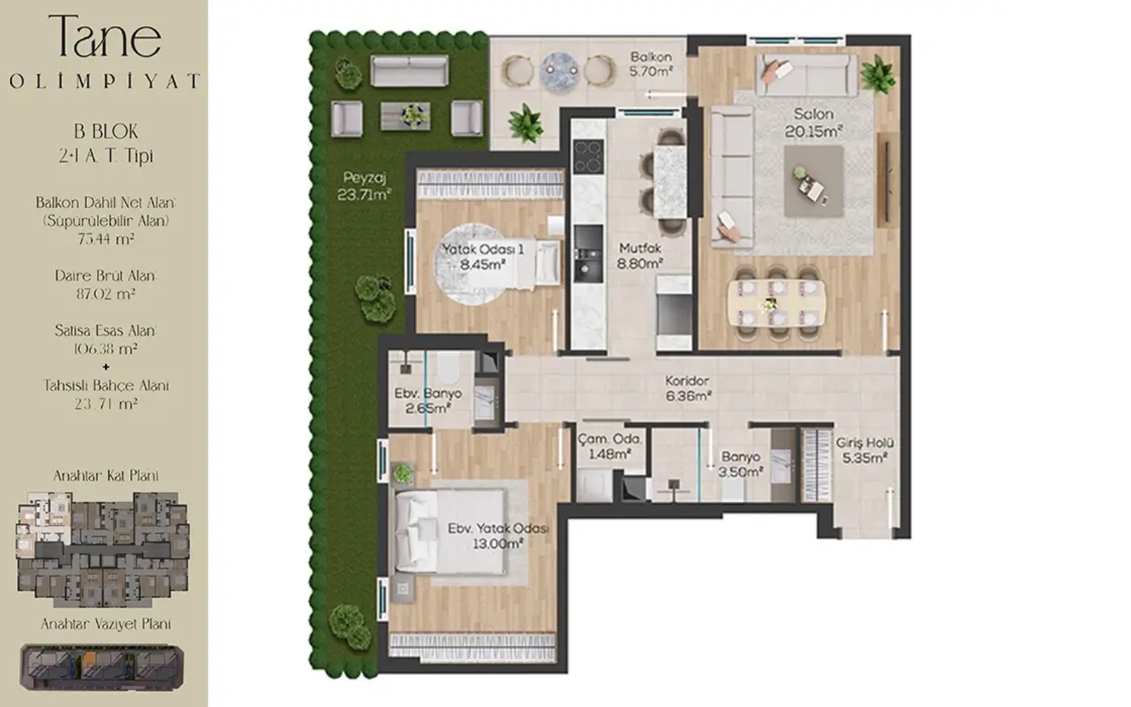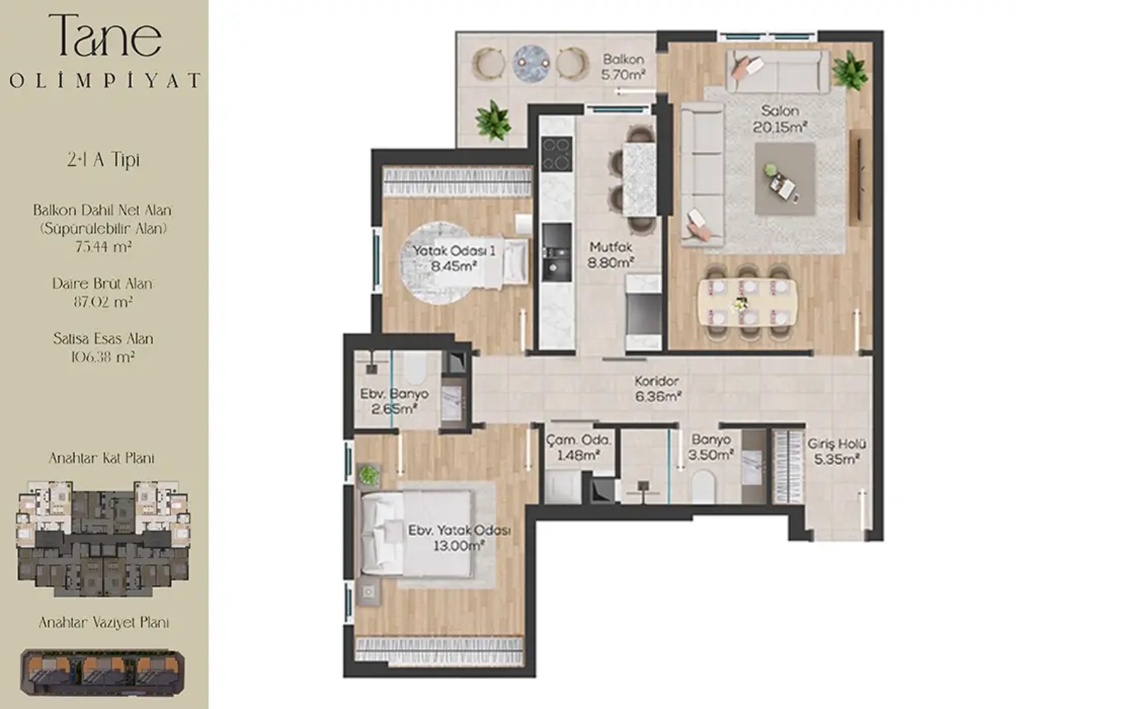 Çeşitli Daire Seçenekleri: 2+1, 3+1 daire ve ticari üniteler seçenekleri ile geniş bir yaşam alanı sunuyoruz. 52 adet konut, 5 adet ticari ünite ile toplamda 57 adet bağımsız bölüm bulunmaktadır.